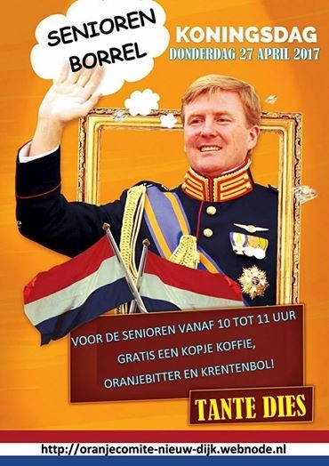 Gezellig samen de verjaardag vieren van onze koning! Een kopje koffie, krentenbol en oranjebitter worden de senioren van Nieuw-Dijk aangeboden door het Oranjecomité bij Tante Dies!