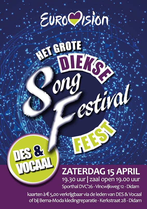 Vocaal en DES presenteren Het Grote Diekse Songfestival Feest!