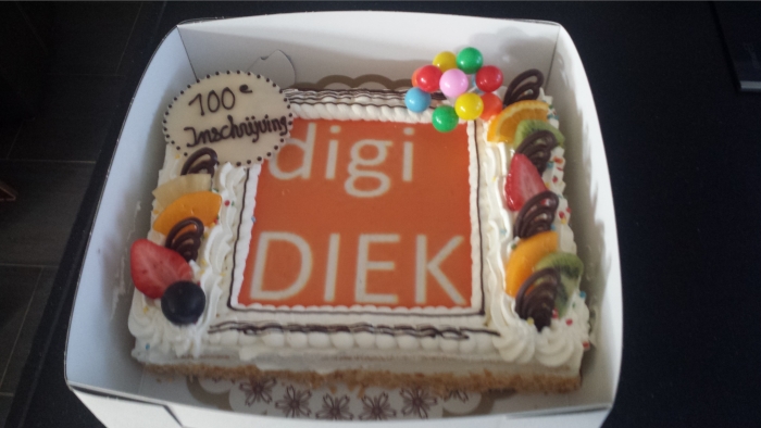 Vandaag hebben we een taart overhandigd aan de 100e inschrijver op DidiDiek. Dorus Jansen was de gelukkige! Gefeliciteerd Dorus!