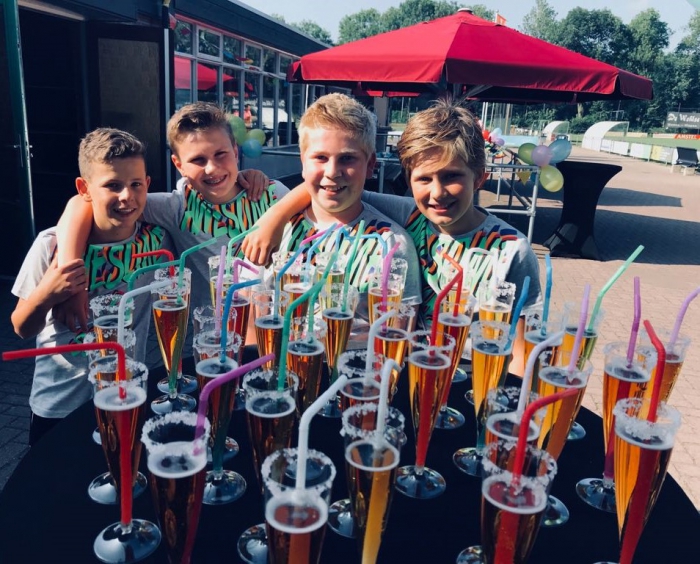 Deze fuif van groep 8 was georganiseerd door Cas, Raf, Luuk en Chiem met een “beetje” hulp van ouders. Een BBQ , een moordspel en een disco.