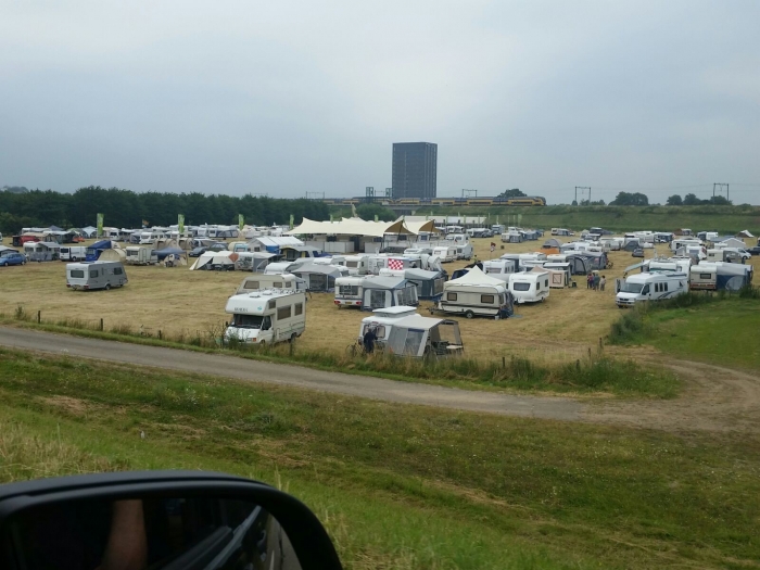 Vanmorgen is de tent opgezet. Het weer beloofd ook (te) goed te worden. We hebben d'r zin an.