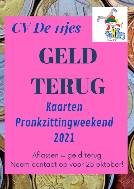 Bezoekers die voor deze avond of middag in 2021 een toegangskaart hebben gekocht tijdens de voorverkoop kunnen het geld hiervoor terug krijgen door een e-mail te sturen naar , onder opgave van uw naam, aantal tickets en bankrekeningnummer. Hierna zullen wij het bedrag aan u terugstorten. Dit kan tot en met dinsdag 25 oktober aanstaande.