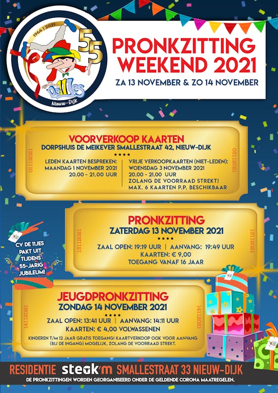 Jeugdpronkzittingkaarten vrije verkoop à € 4,00 per stuk (volwassenen).