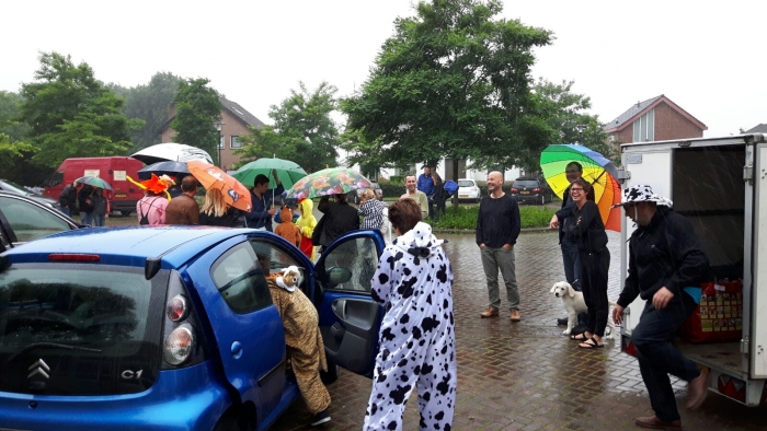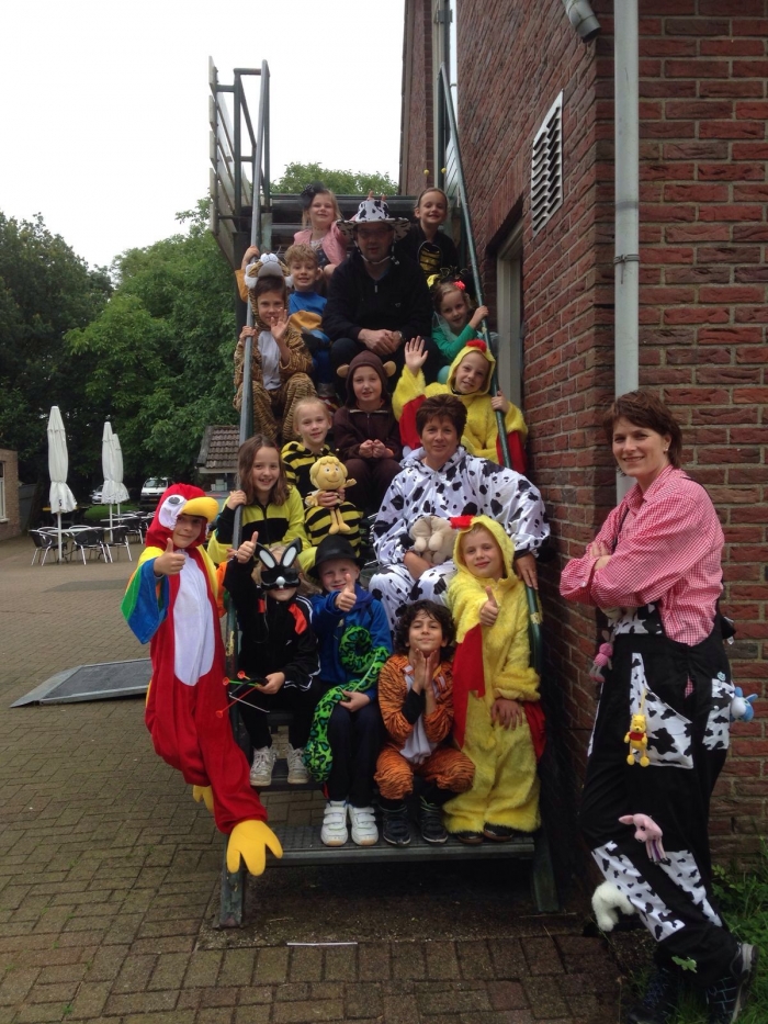 Jazeker, de kinderen van groep 3 en 4 hadden er zeker zin in! Rondrennende kippen, bijen en tijgers waren te vinden op het plein bij de school op vrijdagavond 1 juli. En dat het steeds harder ging regenen, maakte deze dieren niks uit!