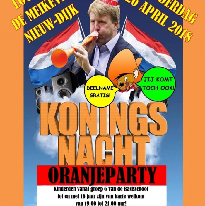 Jongens en meiden, de jeugd heeft de toekomst! Daarom nodigen wij jullie uit voor een gezellig 'Koningsnacht' feestje op de avond voor Koningsdag.