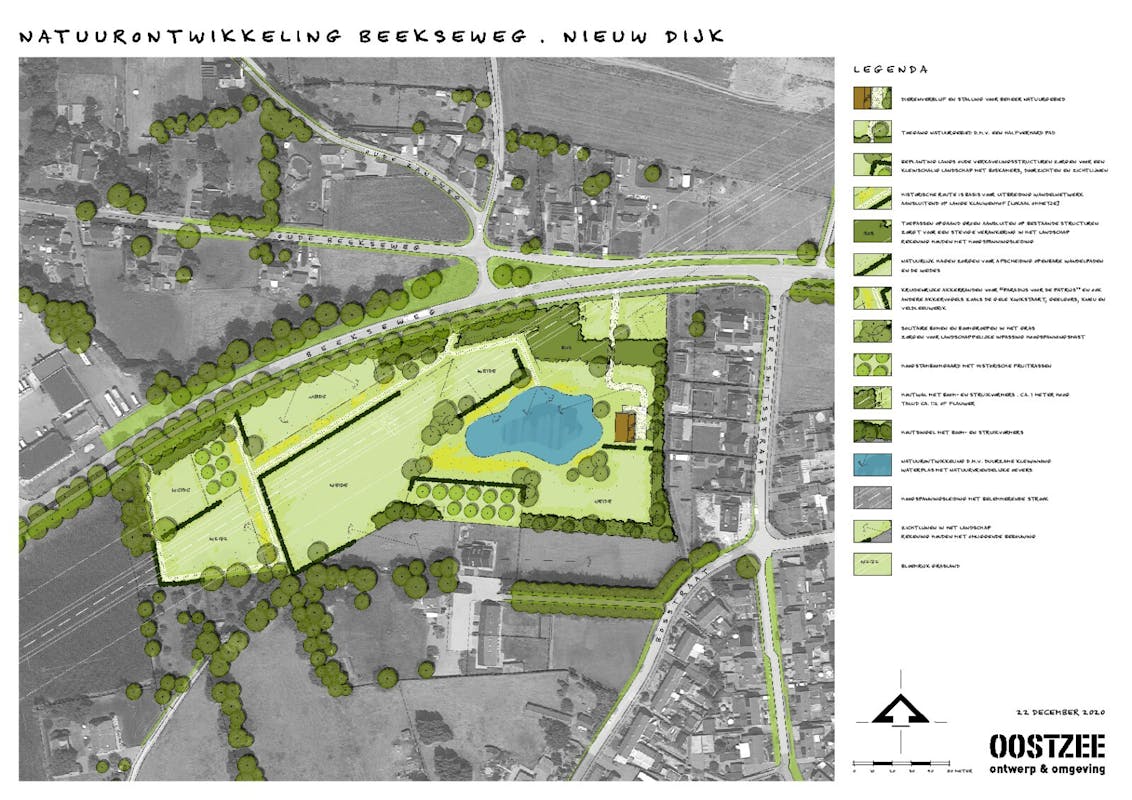 Het bureau Oostzee ontwerp & omgeving te Arnhem heeft voor ons haar ervaring en expertise ingezet voor een haalbaar plan dat inspeelt op de kwaliteiten van de omgeving. Het plan“Natuurontwikkeling Beekseweg Nieuw Dijk”. Een plan dat naar onze mening volledig past in de visie die de gemeente heeft op het inrichten van vrijkomende agrarische gronden en zal leiden tot een flinke natuurlijke en landschappelijke meerwaarde voor het gebied op zichzelf maar zeker ook deomgeving. Het (concept)inrichtingsplan met een beknopte omschrijving in de legenda is als bijlagetoegevoegd. Het plan is gebaseerd op de visie die het bureau ook uitdraagt: “ruimtelijke kwaliteit is meer dan een leuk idee – een ontwerp moet het waar maken en omgevingsrecht het zeker stellen”.