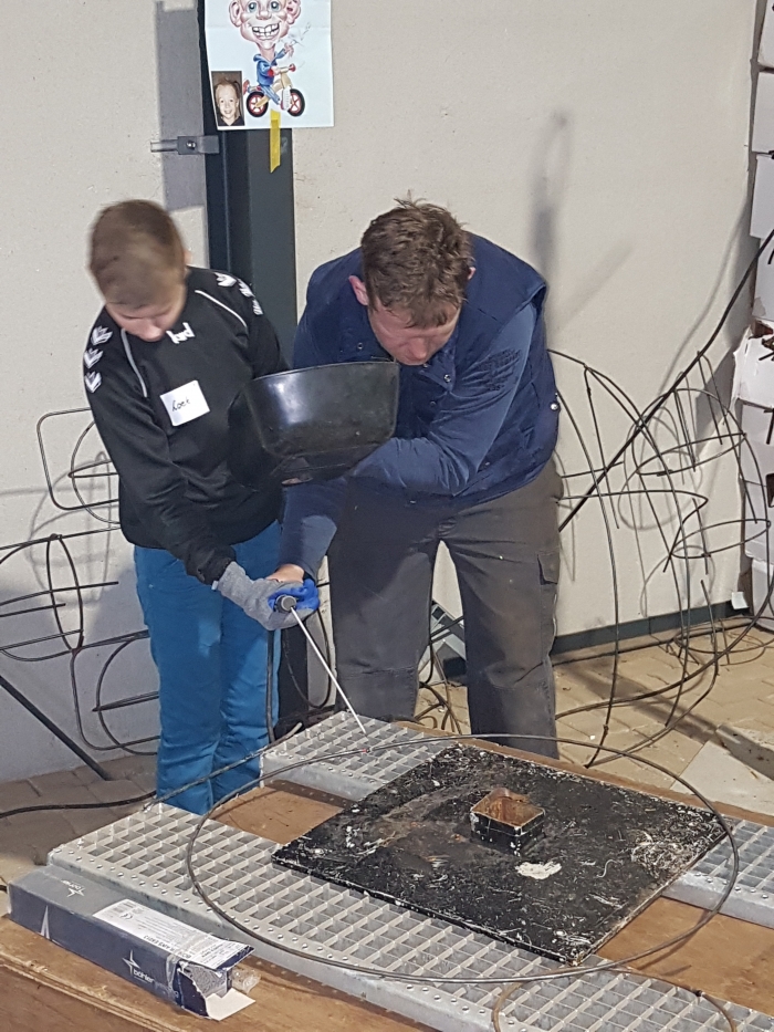 Het lassen blijkt nog steeds het moeilijkste onderdeel gevonden te worden, hiervoor is natuurlijk een beetje kracht nodig bij het buigen en dat viel soms nog tegen. Met vier ervaren lassers erbij vanuit onze vereniging en vanuit Carnavalsgroep De Dröpkes, hebben de kinderen genoeg ondersteuning gehad en kregen zelfs een leuk zelf gemaakt 'gezichtje' mee. Bij het plakken konden de kinderen leren hoe zij het beste papier maché konden gebruiken en werd er ook gebruik gemaakt van stucloop op bestaande frames en een grote kop.