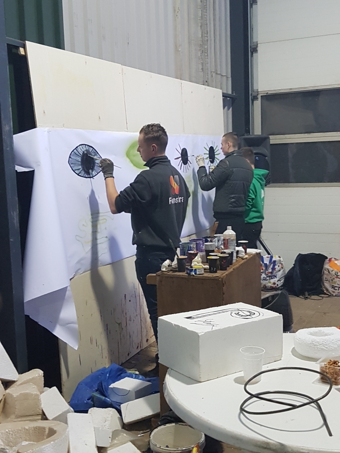 Na de presentatie volgde er de rondleiding door de bouwlocatie aan de zijde waar zes groepen bezig zijn met het bouwen van de wagen. Vervolgens werden de groepen opgedeeld en konden in de diverse workshops zelf aan de slag. Zowel tijdens de middag als de avond hebben de kinderen zich goed vermaakt en hebben allerlei zaken zelf mogen maken.