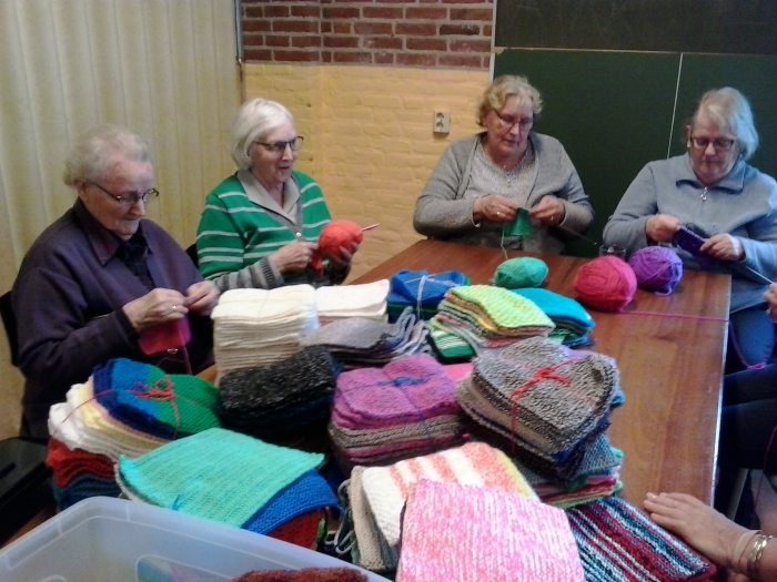 Vanmorgen was het weer een gezellige drukte bij de senioren. Er wordt gebreid voor een goed doel. Hebt u nog wol over voor pen-dikte 3-4. dan willen we dit graag gebruiken.