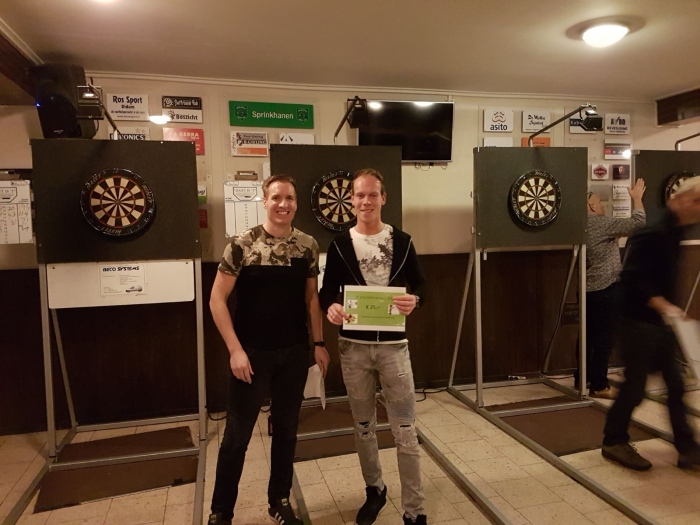 Hoogste score Sjaak Koster met 160, winnaar Funbord: Maikel Derksen.