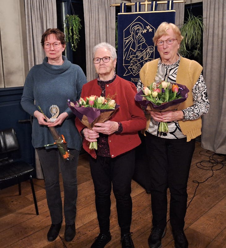 Na de vergadering werden er enkele dames gehuldigd met hun jubileum.
