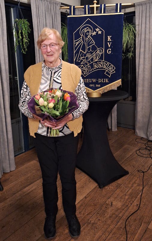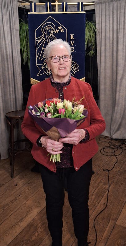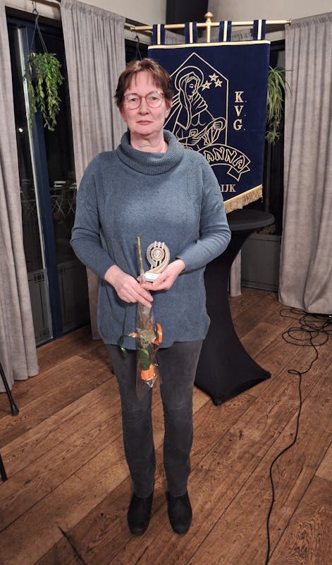 Odette te Koppele is 25 jaar lid zij kreeg een ornamentje en 1 roos,