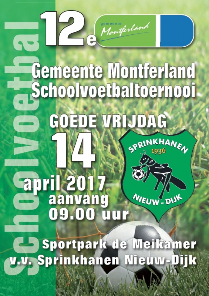 Op goede vrijdag 14 april organiseert v.v.Sprinkhanen voor de 12e X het Gemeente Montferland schoolvoetbal toernooi. Er zullen ruim 750 kinderen deelnemen aan het toernooi.