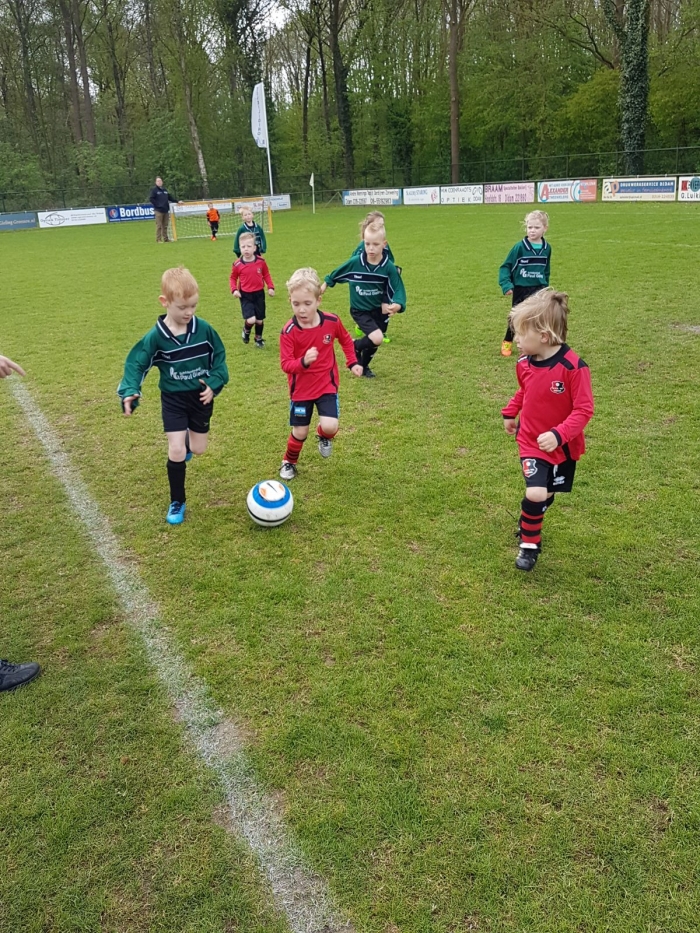 Op zaterdagmorgen 22 april speelden de mini`s van Sprinkhanen en Dvc`26 tegen elkaar. de mini`s van Sprinkhanen wonnen met 7-1 maar het plezier stond voorop.