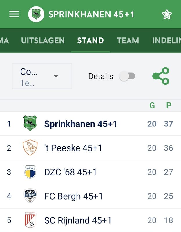 Vrijdagavond is het Sprinkhanen 45+ team gelukt om in een zinderende eindfase van het seizoen de titel naar zicht toe te trekken!
