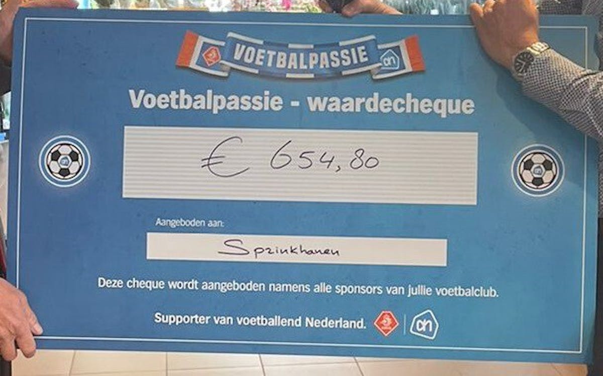 Vanmiddag heeft Frank Buiting de cheque in ontvangst genomen namens Sprinkhanen van de AH voetbalpassie actie.