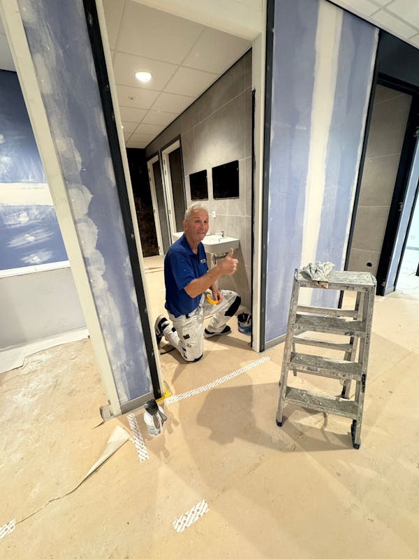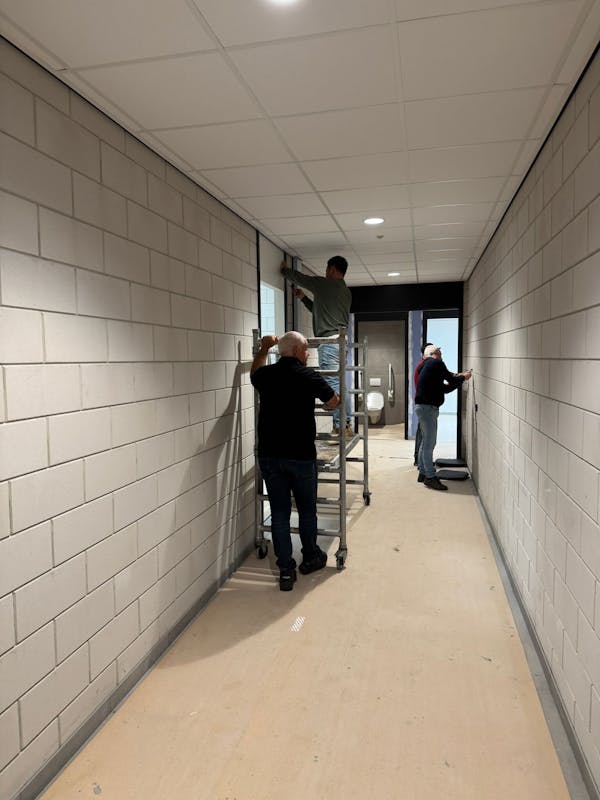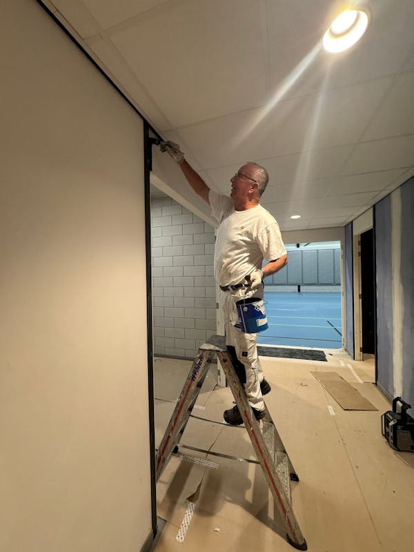 Vandaag is er opnieuw veel werk verzet in Meikamer. Terwijl de belijning in de sportzaal werd aangebracht, waren verschillende vrijwilligers uit Nieuw-Dijk volop aan het schilderen. Dankzij hun inzet is weer een duidelijke stap gezet richting de afronding van het gebouw.