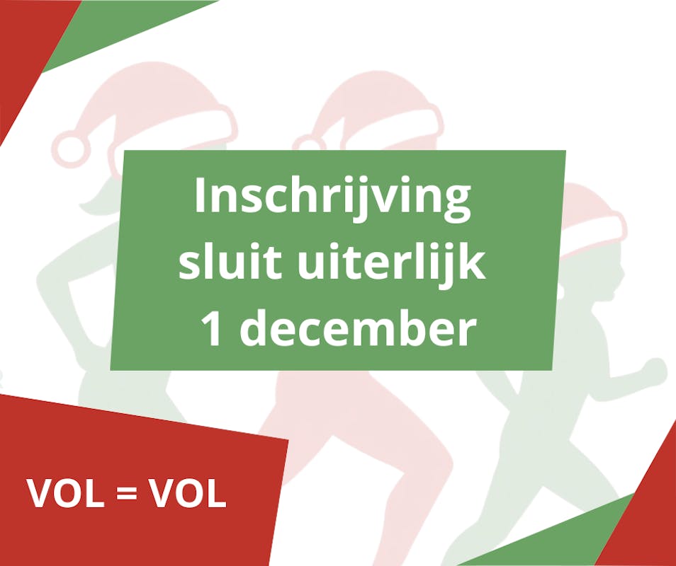 De aanmeldingen voor de Meikamer Kerstloop op 21 december stromen binnen. Daarom gaat de inschrijving eerder dicht. Je kunt je nog aanmelden tot 1 december, tenzij een afstand al eerder vol is.
