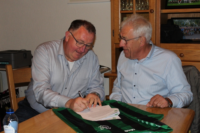 Zoals altijd met een taartje en onder toeziend oog van bestuur en sponsorcommissie werden de handtekeningen gezet.