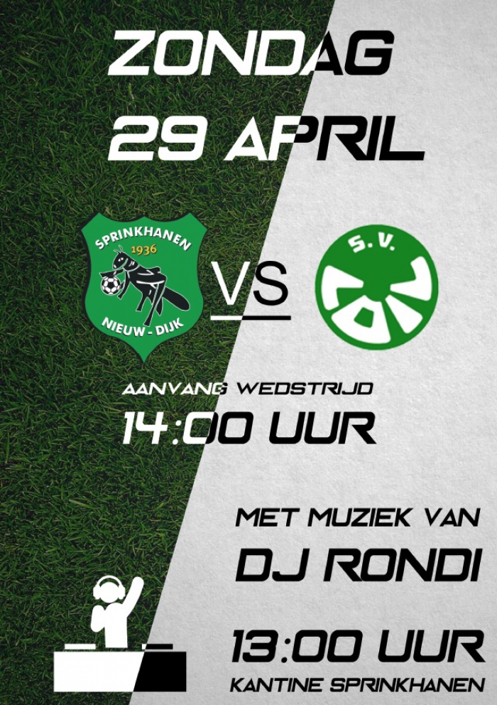 Donderdagavond 26 april speelt Sprinkhanen 1 thuis tegen GSV`38 1 aanvang wedstrijd 19:00 uur.