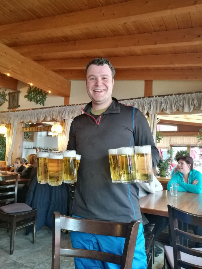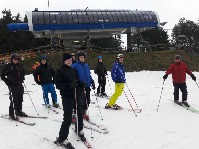 Na een 'rustige' avond '1 of 2' drankjes te hebben genuttigd stond allereerst een skidag in Winterberg ingepland. Al snel bleek dat de heren van Sprinkhanen 4 in principe talent hebben voor iedere tak van sport (met de nadruk op in principe). Menig kilometers werden gemaakt om vervolgens nog even met zijn allen mee te doen aan een coolingdown, zodat de spiertjes lekker soepel zouden blijven voor de kilometerslange hiking tocht een dag later.