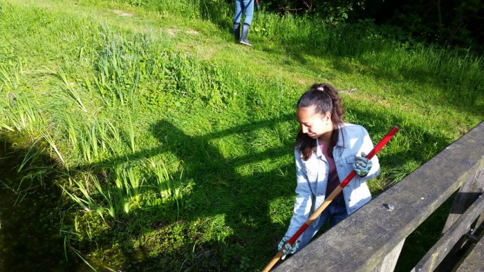 Gisteren, zaterdag 12 mei, hebben we ons erg nuttig gemaakt in het bos. De dames Hubers hebben veel van de algendrap uit de poel gehaald; het vlonder is schoongespoten met een een sterke hogedrukreiniger, die wij mochten gebruiken.