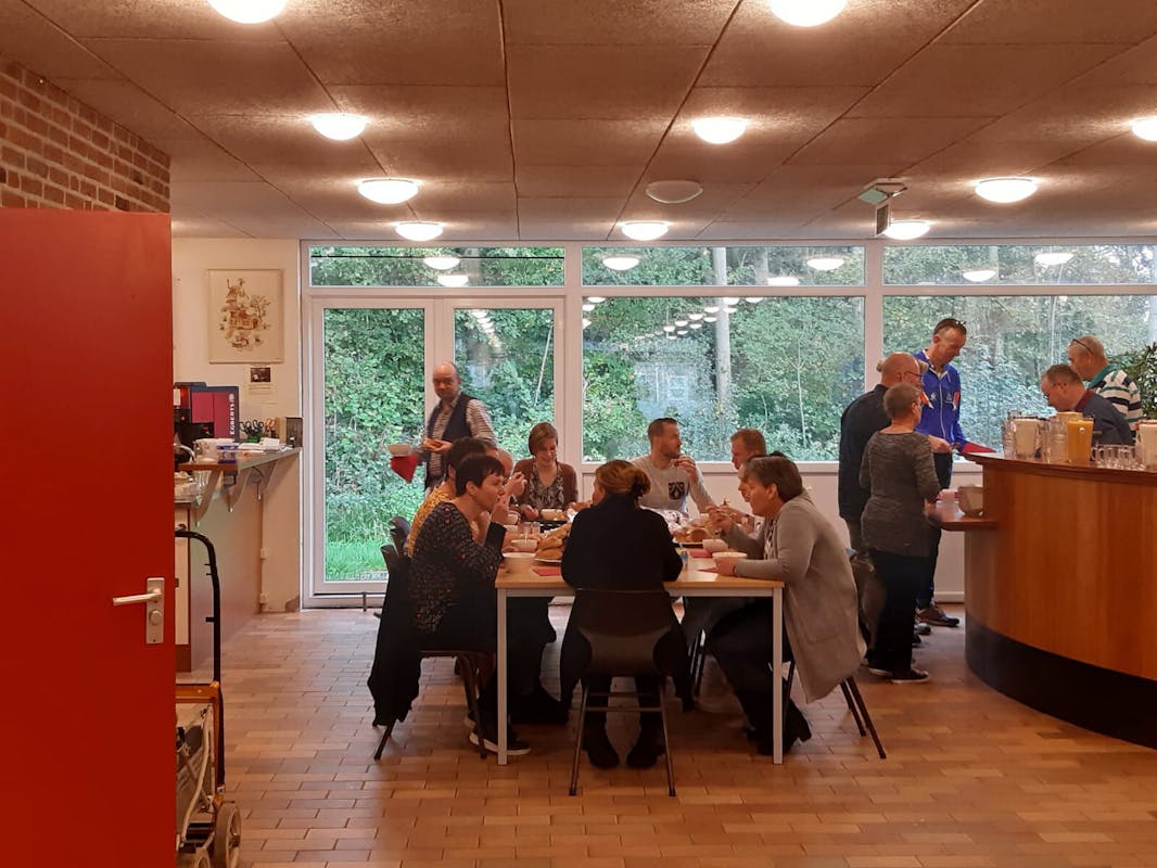 Er werd flink gerepeteerd, dirigent Jilt Jansma trakteerde op koeken bij de koffie, en de enthousiaste mannen van de kookclub serveerde de muzikanten heerlijke, zelfgemaakte soepen en een geweldig broodjesbuffet. Het smaakte zo goed dat de recepten zelfs werden uitgewisseld!