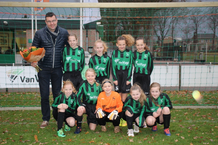 Vanmorgen op een stormachtig en regenachtig sportpark de Meikamer zijn de MeidenO11 in het nieuw gestoken door van Vugt Bouwkundig teken en advies bureau uit Didam.