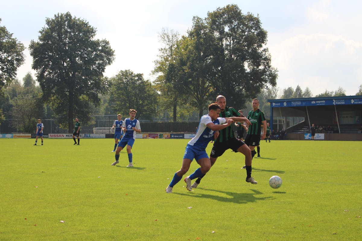 Lang ging het spel gelijk op maar na de rode kaart voor Jan van Zimmeren ging het snel met de doelpunten en eindigde de tweede wedstrijd in verlies voor de hanen.